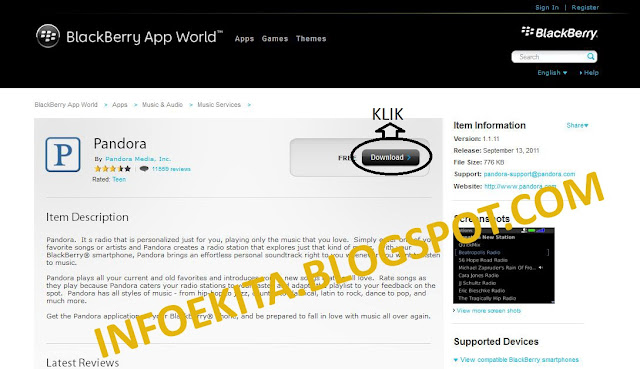 2. Tinggal anda cari aplikasi apa yang mau di instal ke blackberry anda, setelah anda pilih aplikasinya maka akan muncul gambar seperti di bawah ini, kemudianKLIK DOWNLOAD